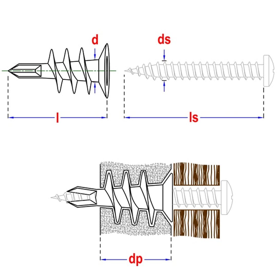 Samorezni vložek za mavčne plošče, najlon